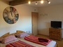 Das Zimmer ist mit einem Doppelbett, Schrank sowie Tisch mit Stühlen